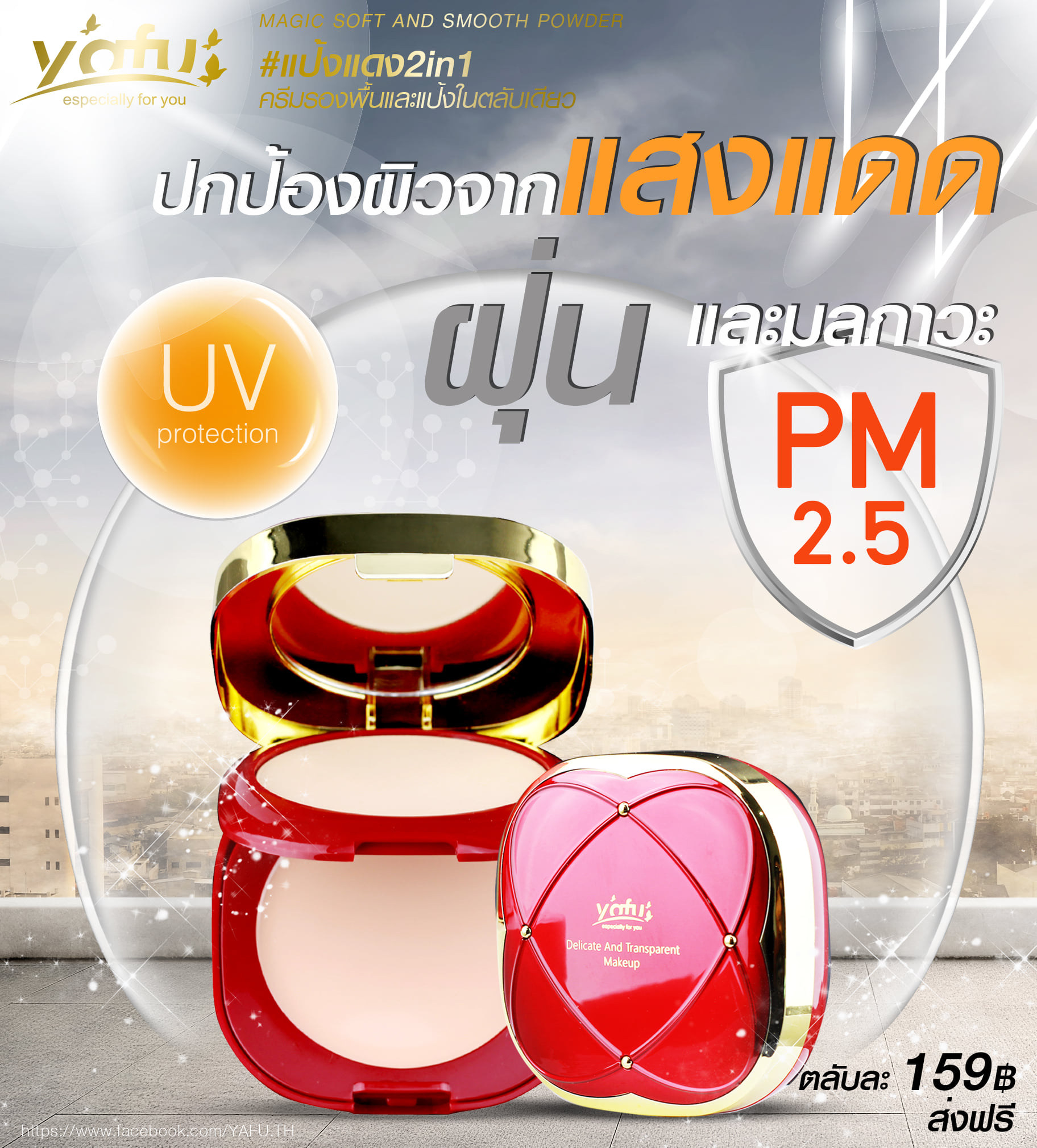 แป้ง ยาฟู Yafu (รุ่นใหม่) เมจิก ซอฟแอนด์ สมูท พาวเดอร์ แป้งพัฟ แป้งพัฟผสมรองพื้น แป้งพัฟกันน้ำ
